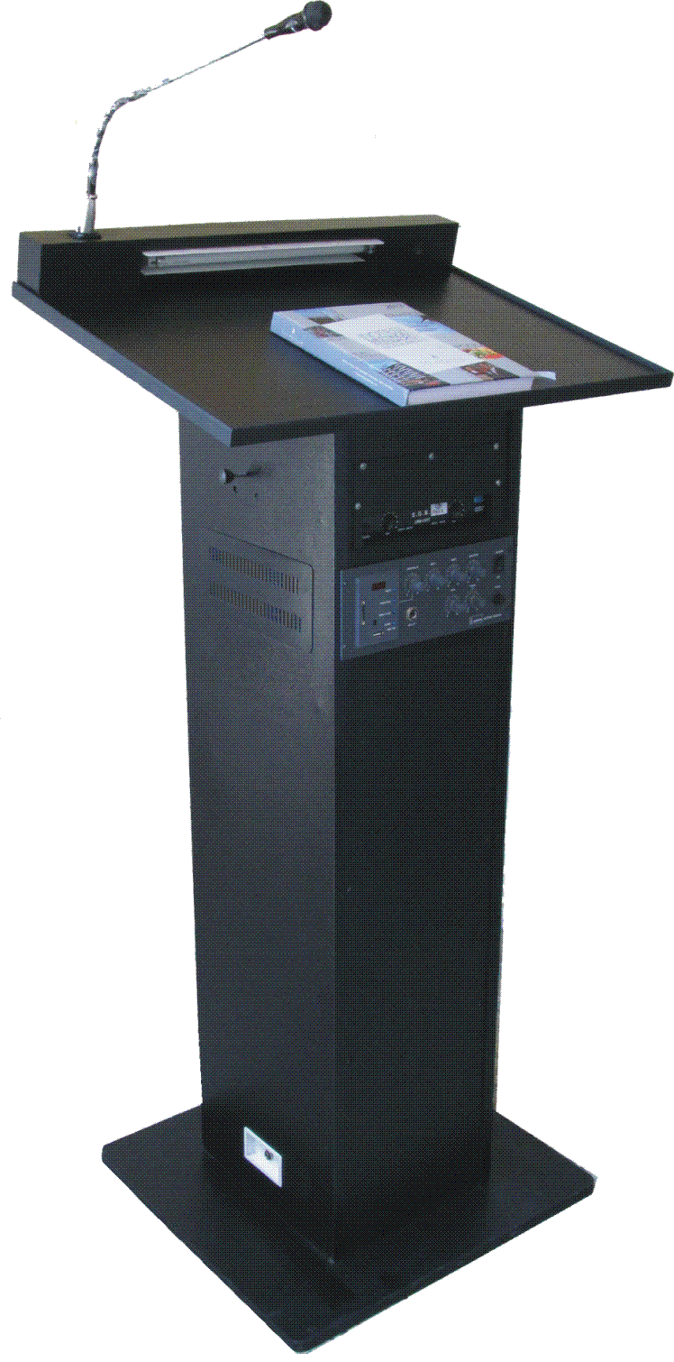 Adjustable height, built in Amplifier and Speakers, Podium Microphone